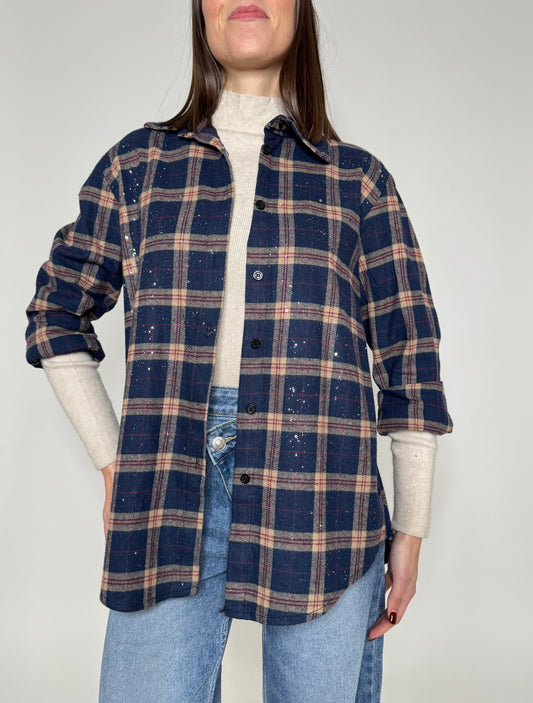 Camicia check strass in flanella di cotone Coffe/bordeaux