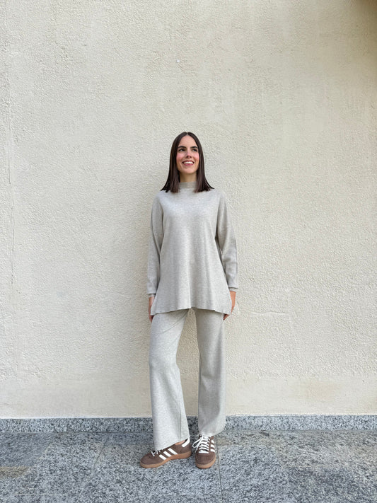 Completo in maglia mezzo collo Tortora chiaro