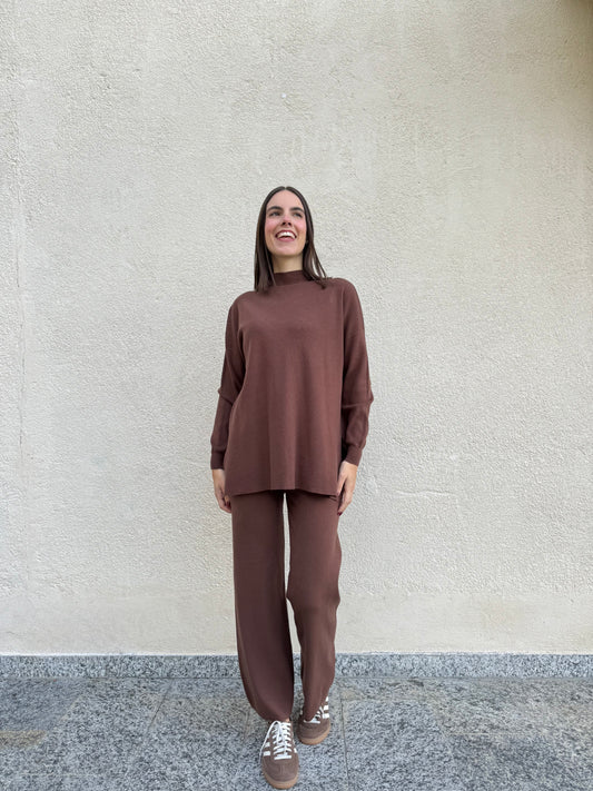 Completo in maglia mezzo collo Cioccolato