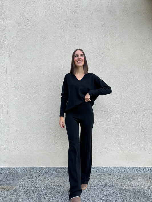 Completo in maglia scollo a v Nero