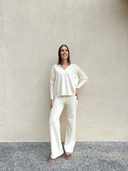 EsauritoCompleto in maglia scollo a v Panna