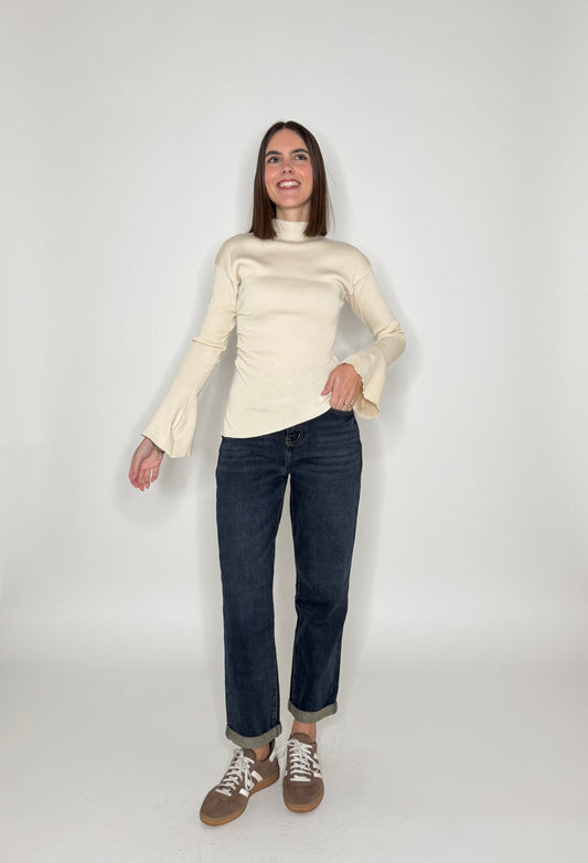 Maglia assimmetrica campana mezzocollo Panna