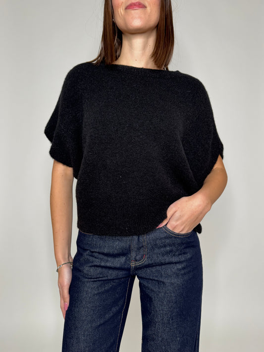 Maglia manica kimono in misto lana e alpaca Nero
