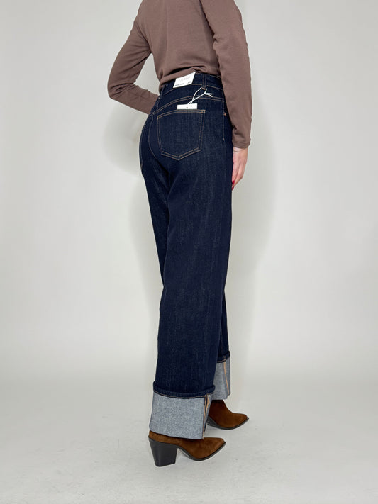 Jeans Wide leg blu scuro con risvolto