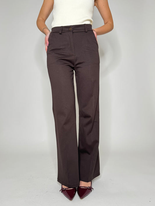 Pantalone punto Milano cioccolato gamba larga