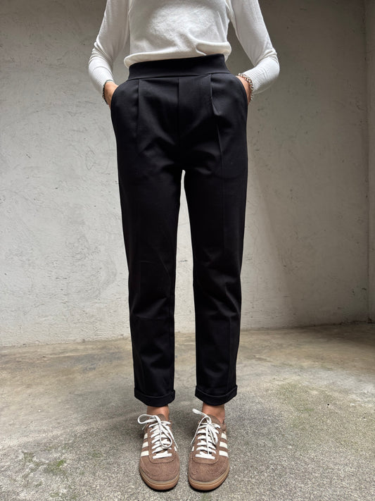 Pantalone punto milano gamba dritta Nero