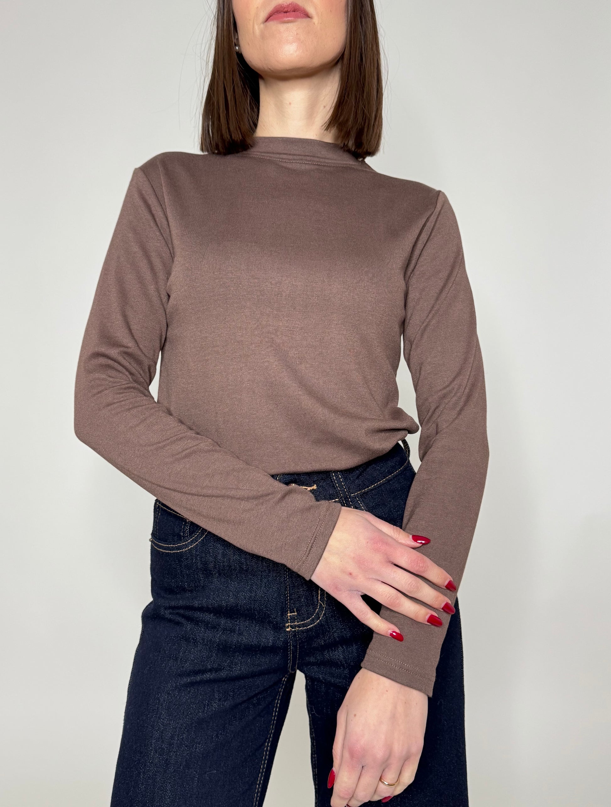 Maglia girocollo accollato, felpata, in calda viscosa.