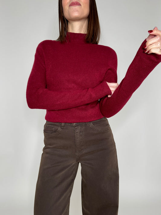 Maglia mezzo collo in misto lana e viscosa Bordeaux
