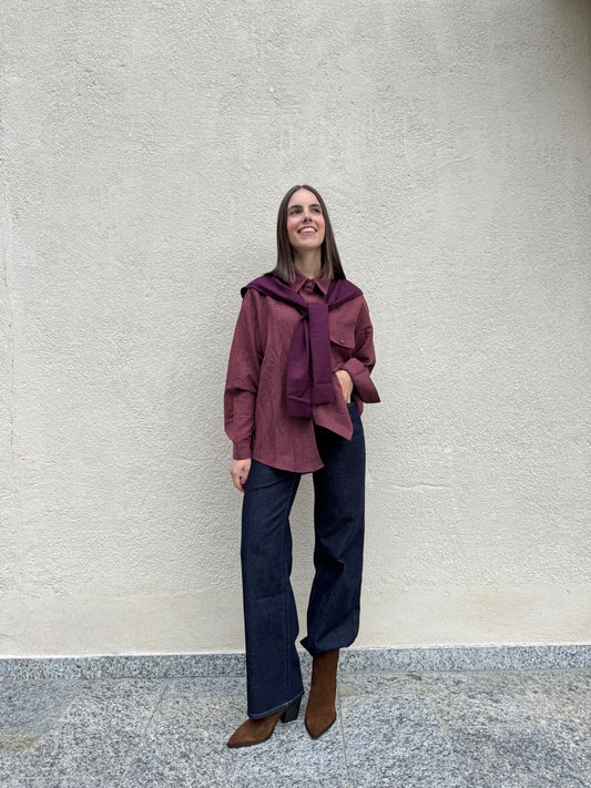 Camicia a quadretti con finto maglioncino/scialle Bordeaux