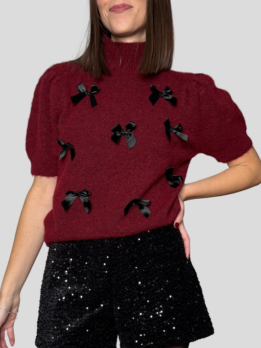 Maglia mezzo collo in misto lana e viscosa Bordeaux