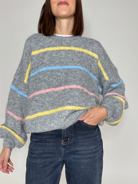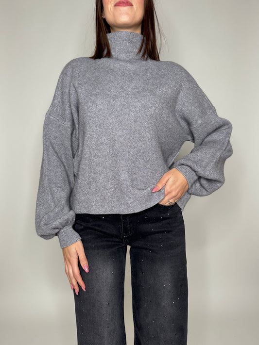 Pull Letizia mezzo collo in calda viscosa Grigio