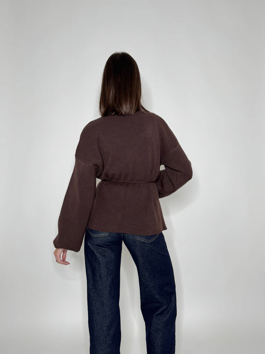 Maglia manica kimono in misto lana e alpaca Ciccolato