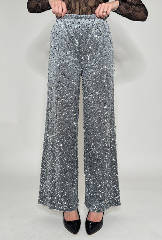 Pantalone paillettes in viscosa argento