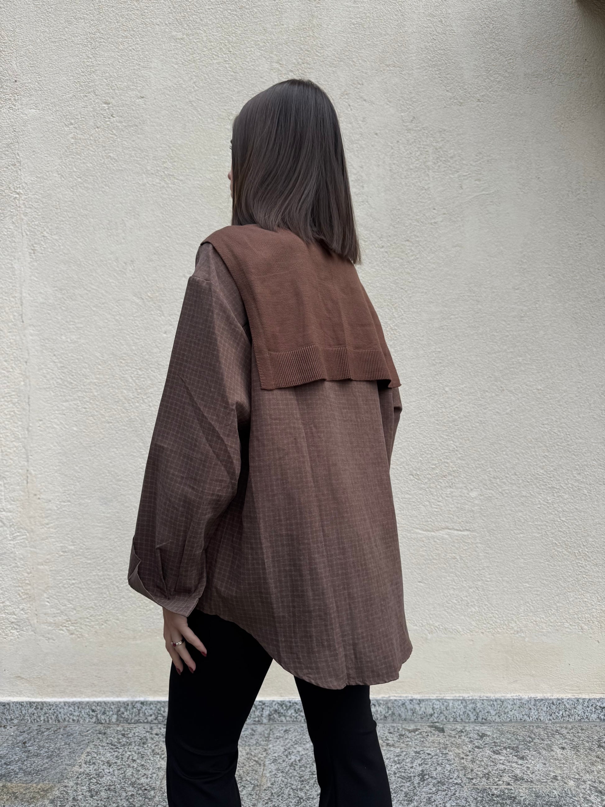 Camicia a quadretti con finto maglioncino/scialle Cioccolato