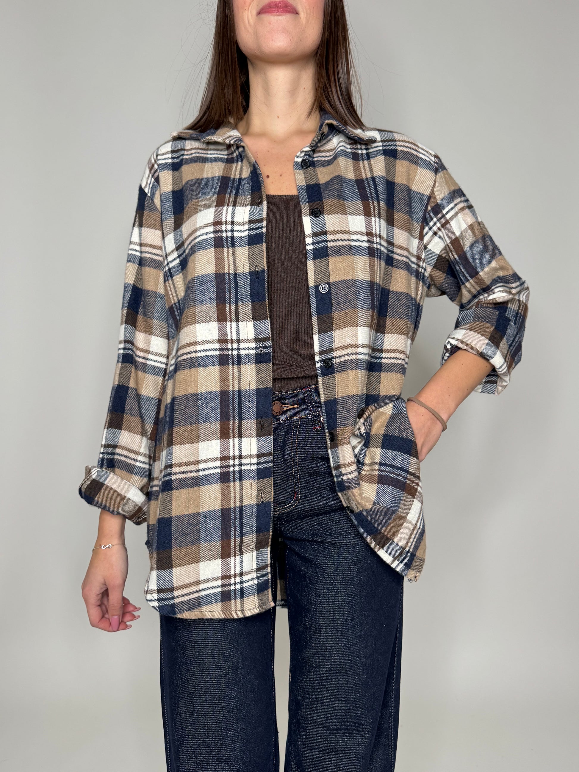 Camicia in stampa check, flanella di cotone. Vestibilità morbida.