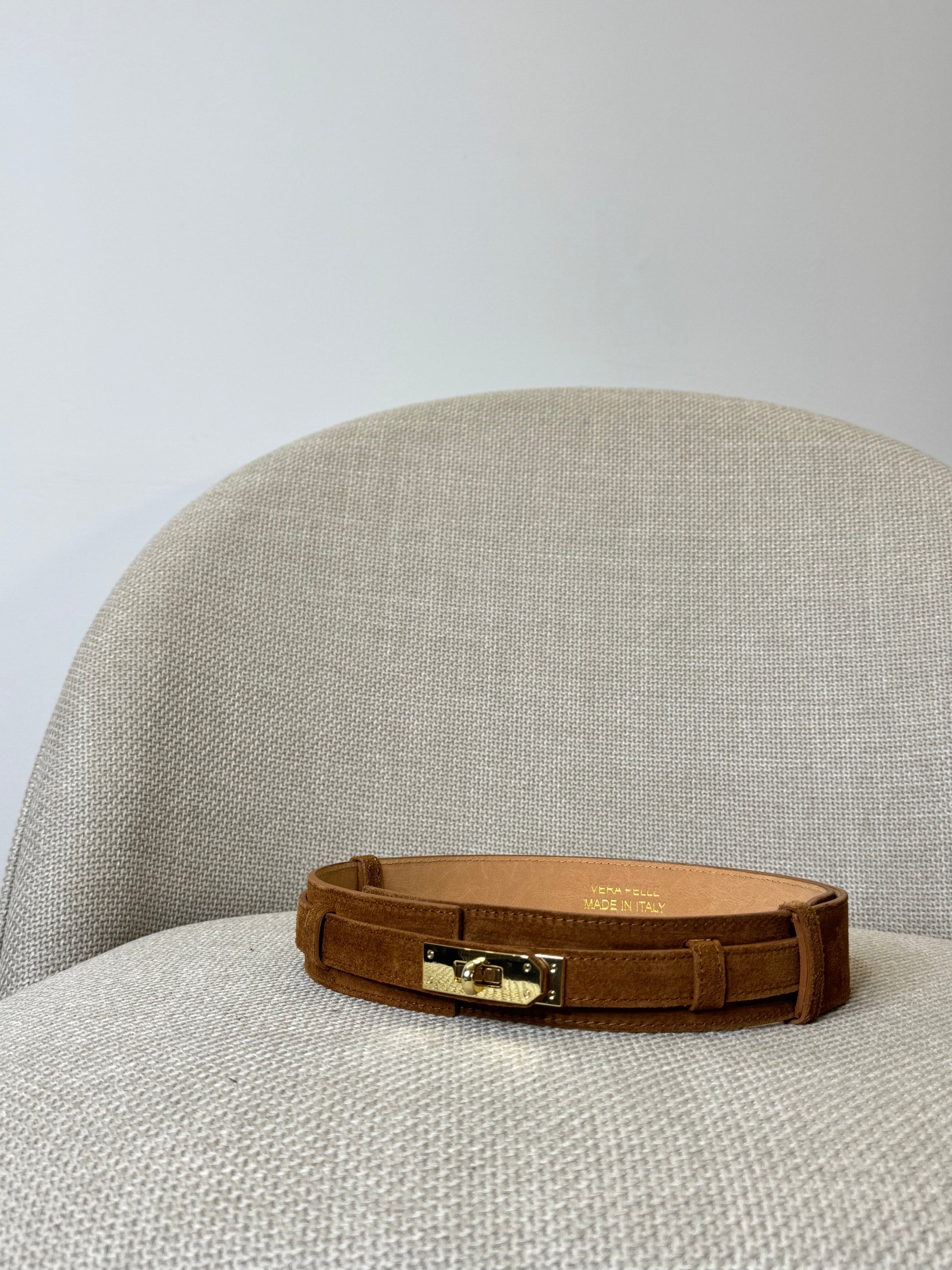 Cintura alta regolabile stile Hermès in vera pelle camoscio cuoio 4cm