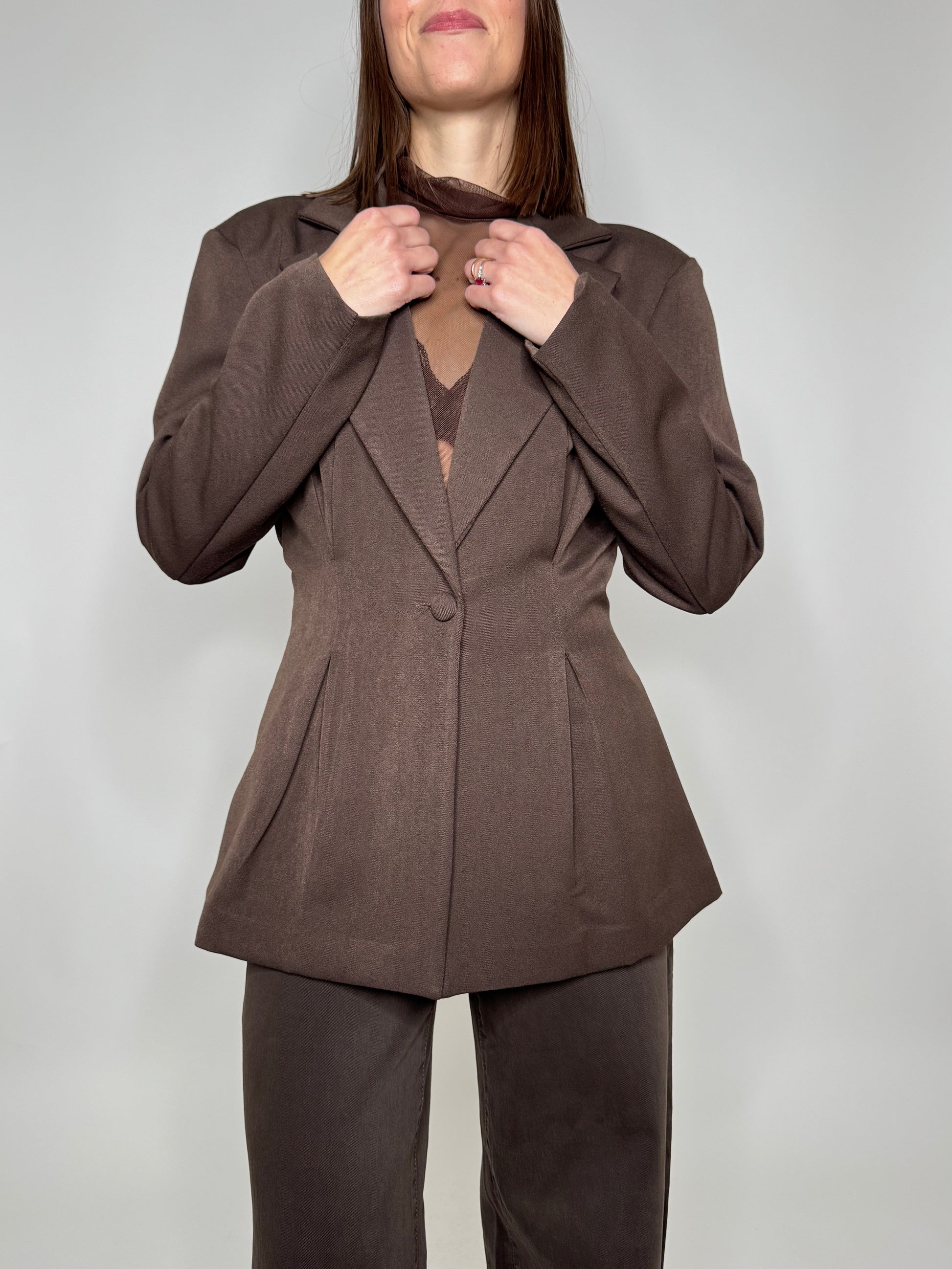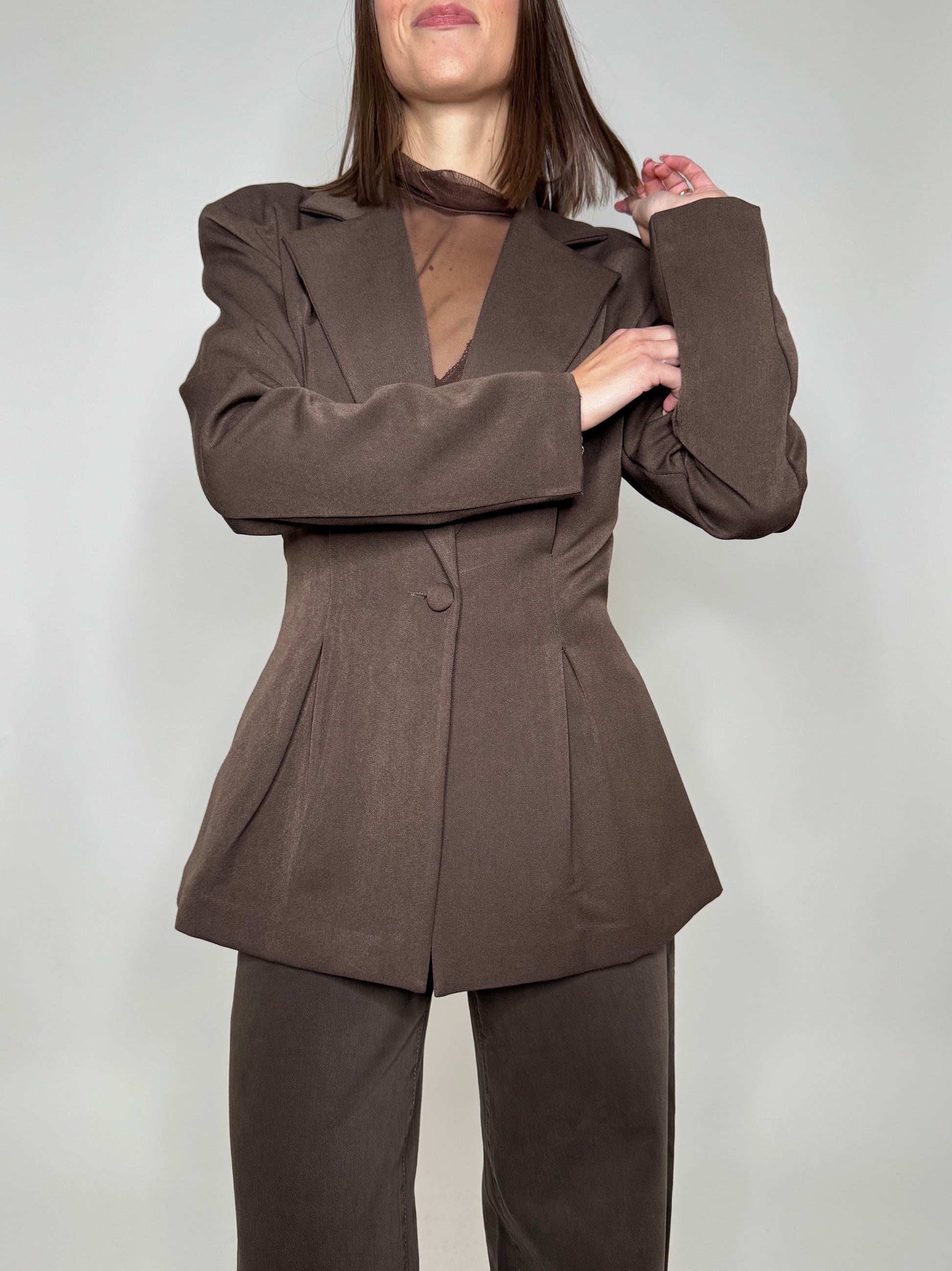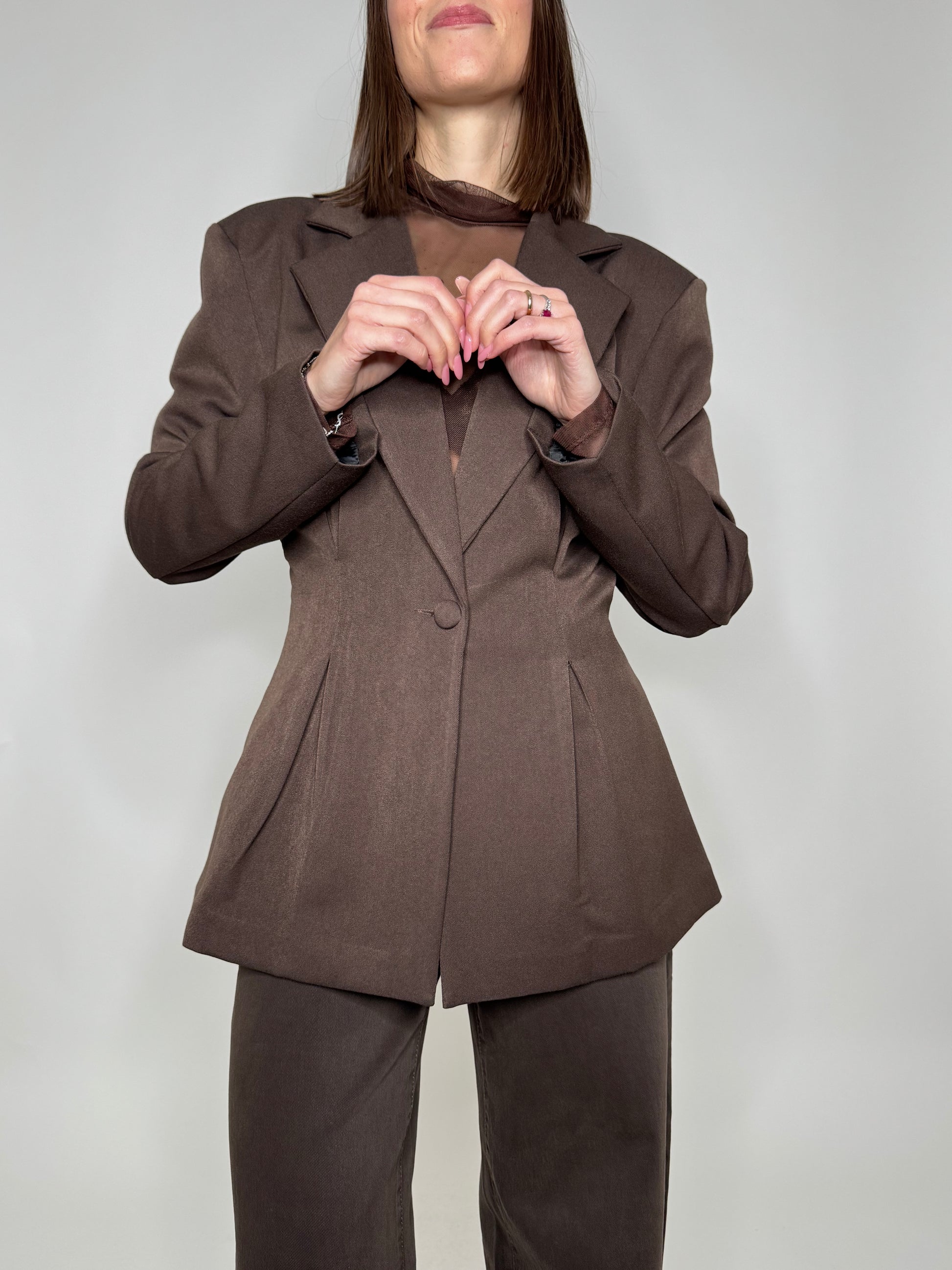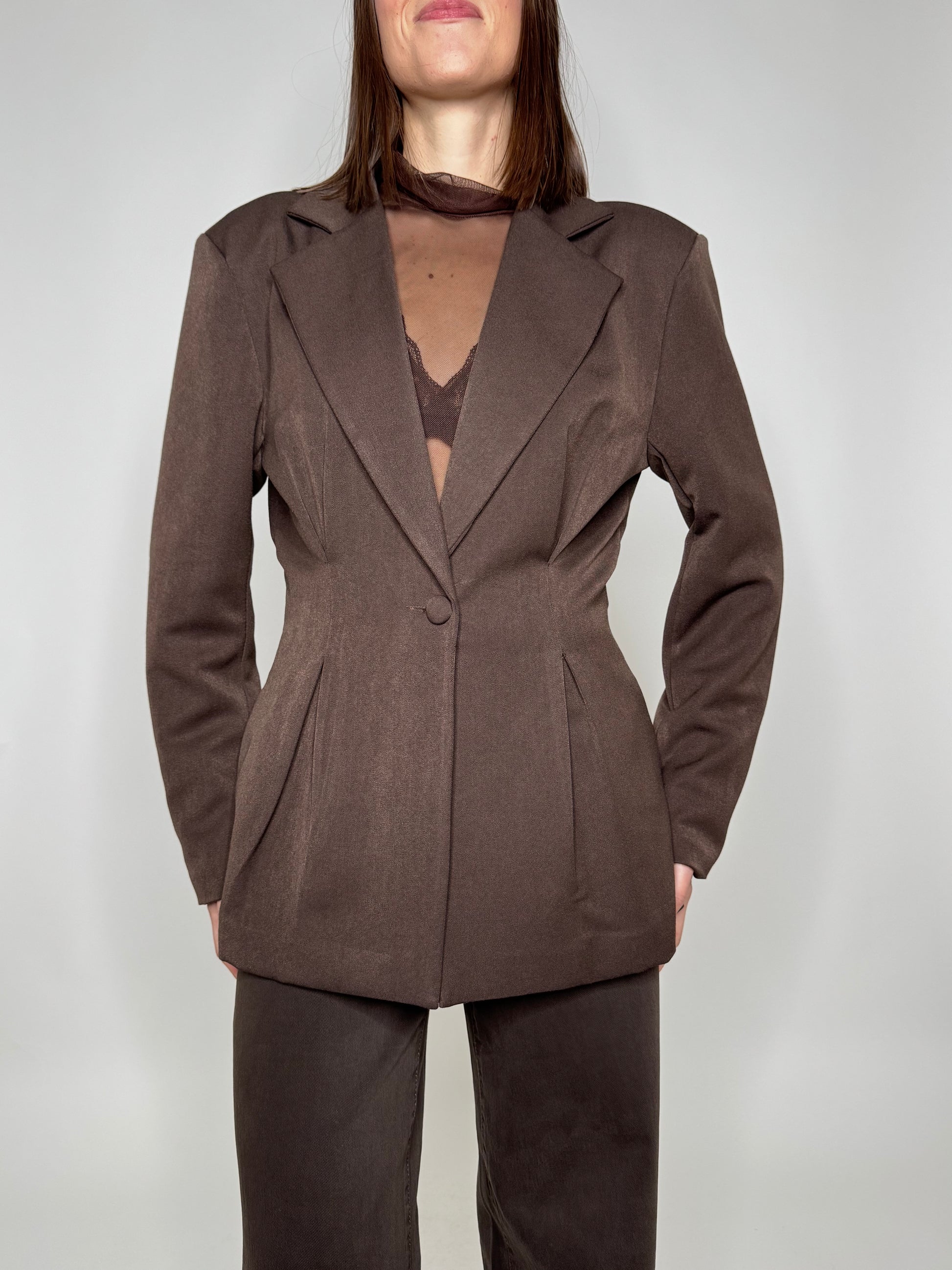 Giacca avvitata con pences sul fronte e retro, avvitata, spalle imbottite e strutturate.