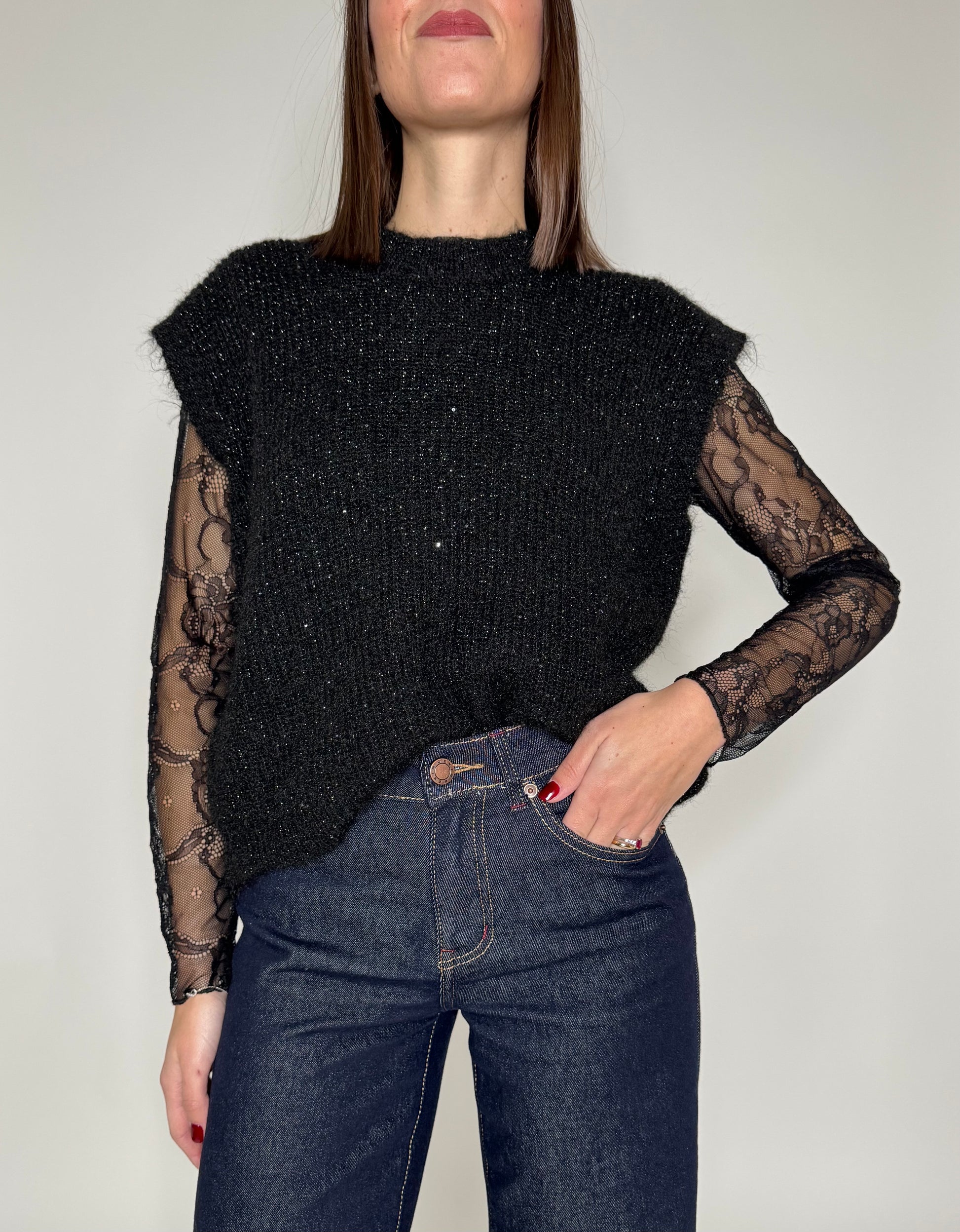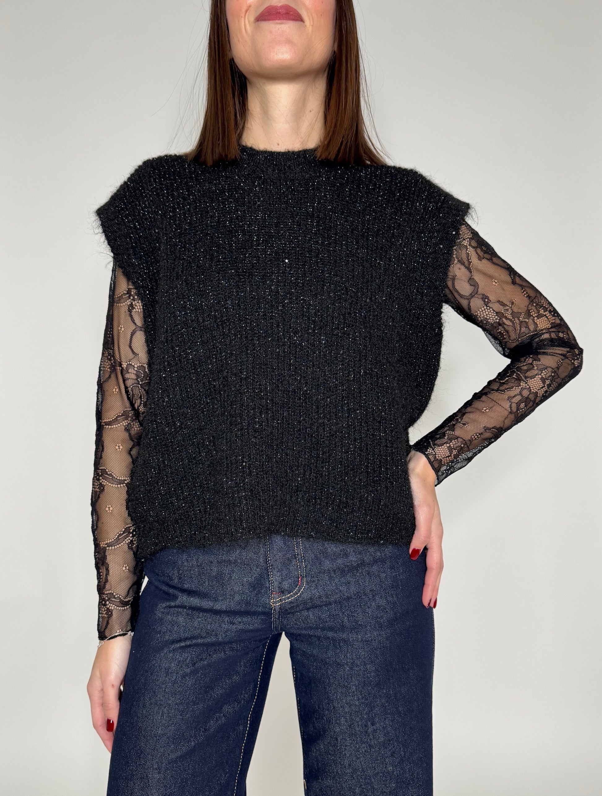 Gilet in maglia, calda viscosa con filo lurex. Vestibilità regolare.