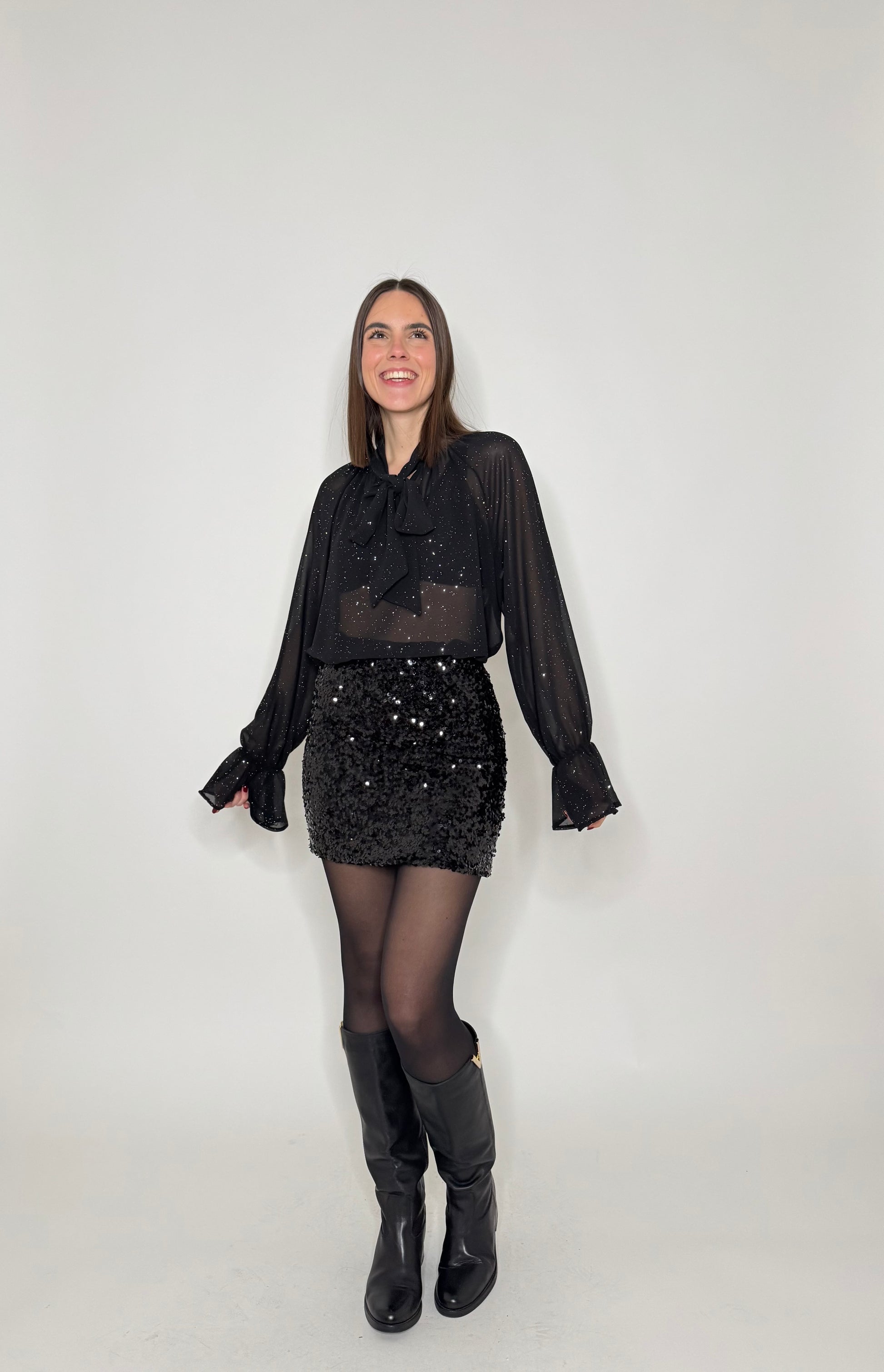 Gonna elasticizzata, federata, tempestata di pailletes.