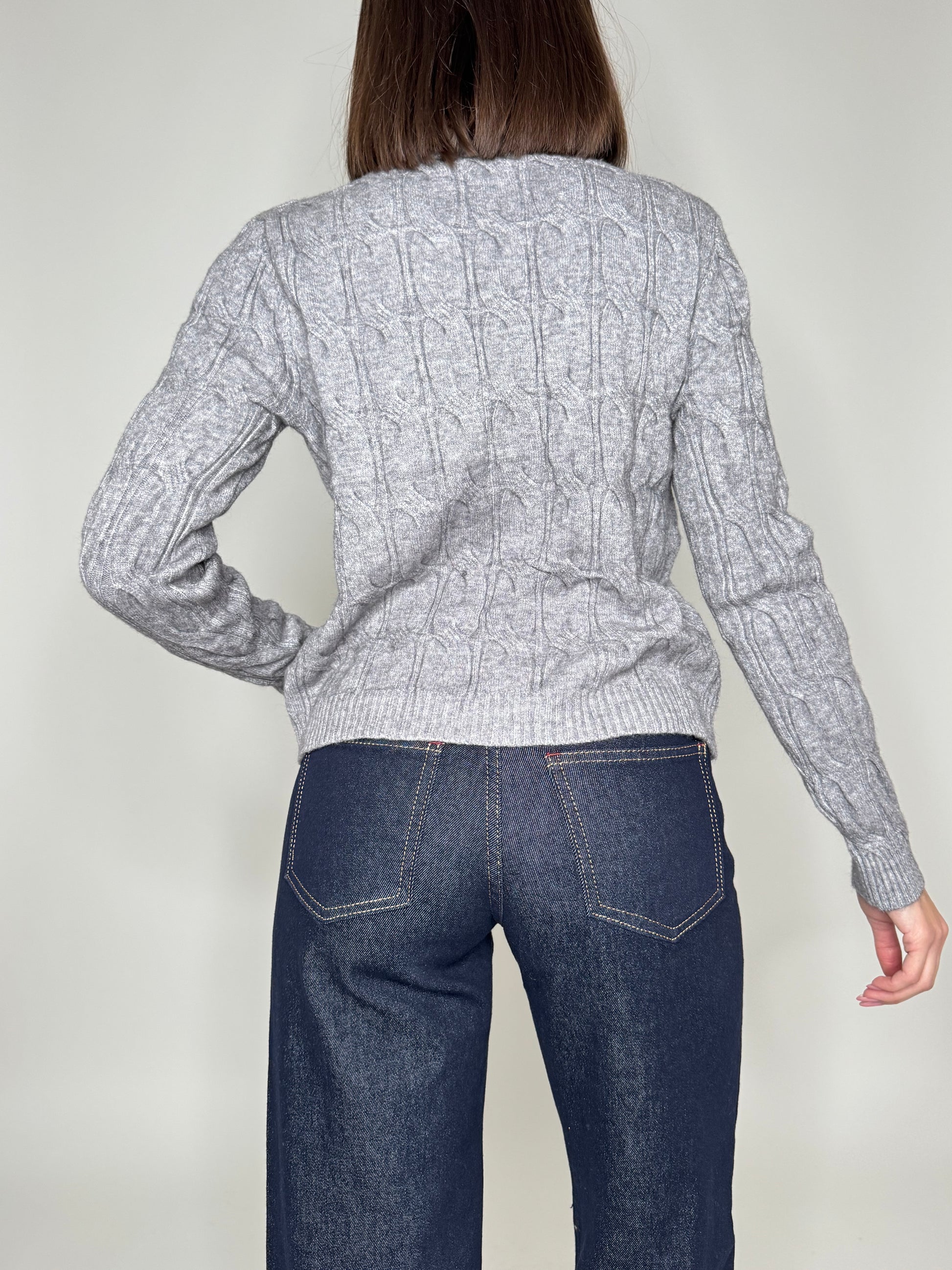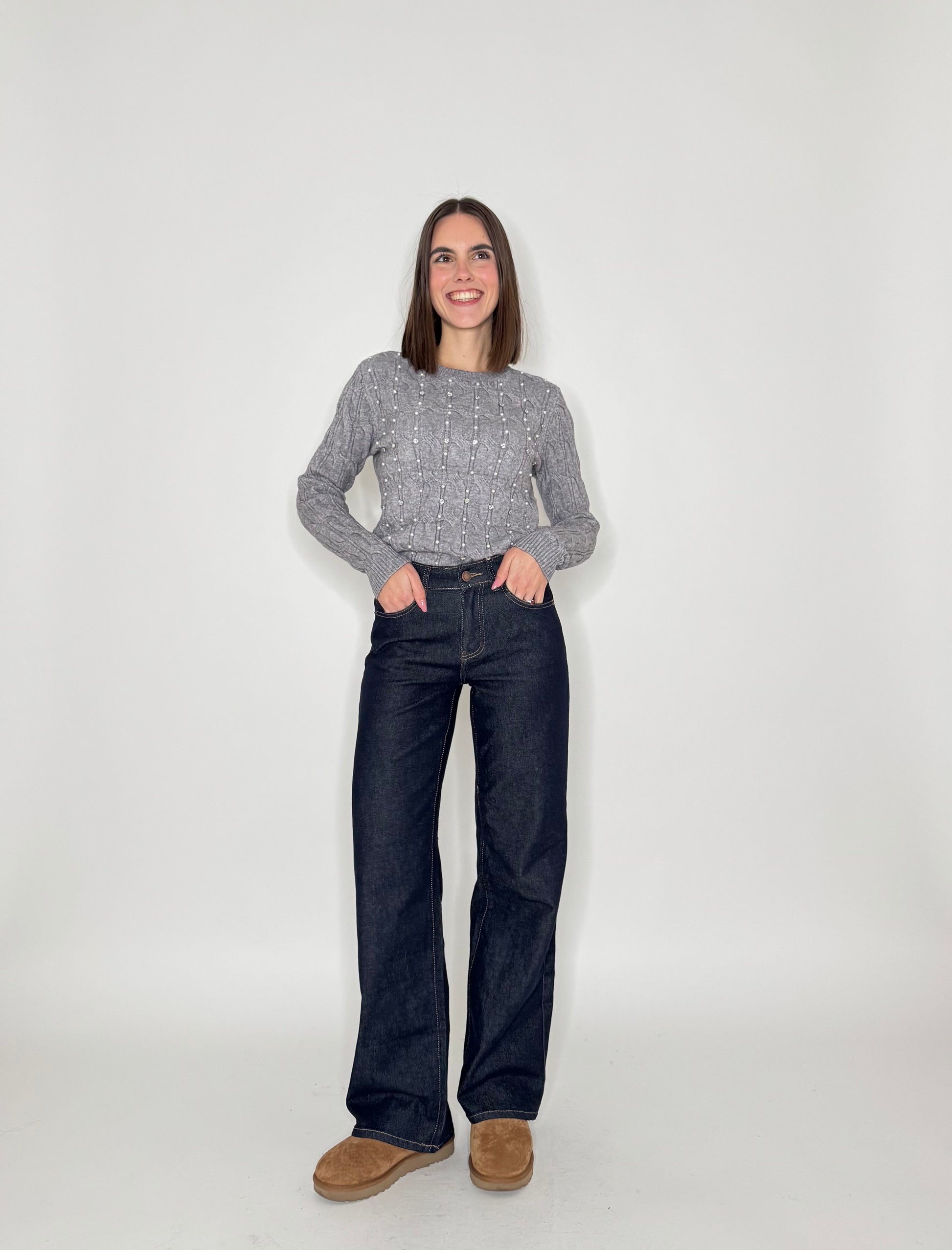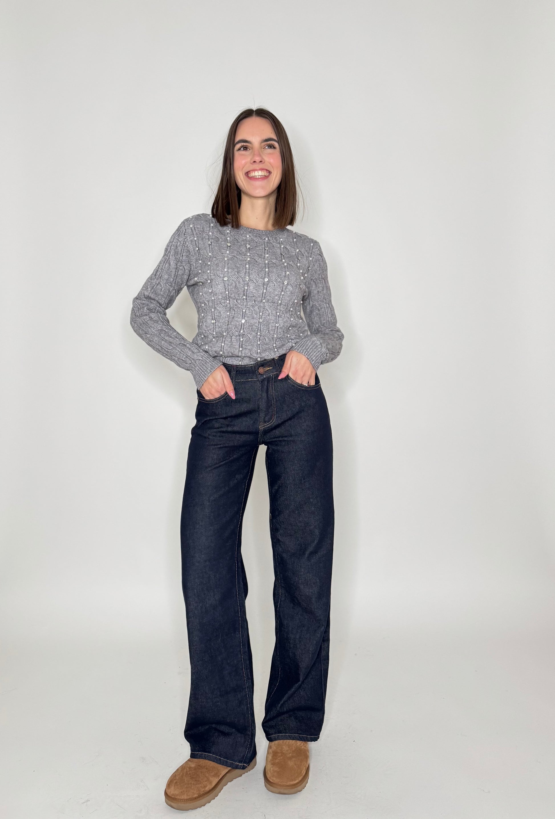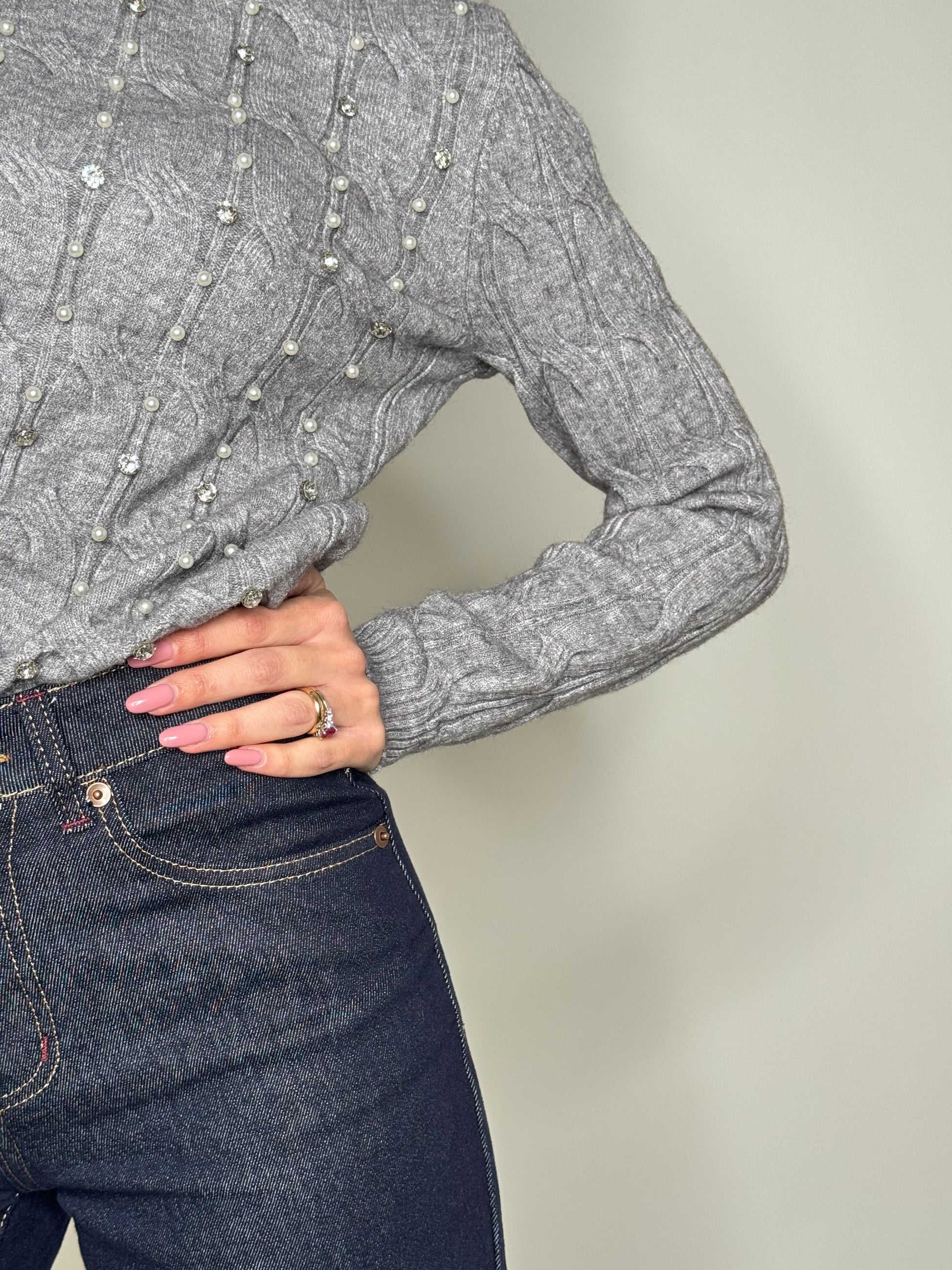 Maglioncino in calda viscosa, girocollo con dettaglia applicati.